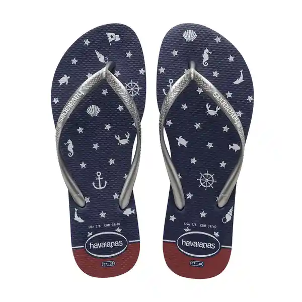 Sandalias Havaianas Slim Nautical fc 0445 7893249423869 Color Azul Género Mujer Los Nudos de Marinero Siempre Gustan; Sea Cual Sea la Estación. Las Chanclas Slim Nautical te Acerca Aún Más a Las Maravillas Del Profundo Mar Azul. Con Tiras Finas y Peculiares Imágenes Náuticas; Este Modelo es Ideal Tanto en Barco Como en Tierra Firme.