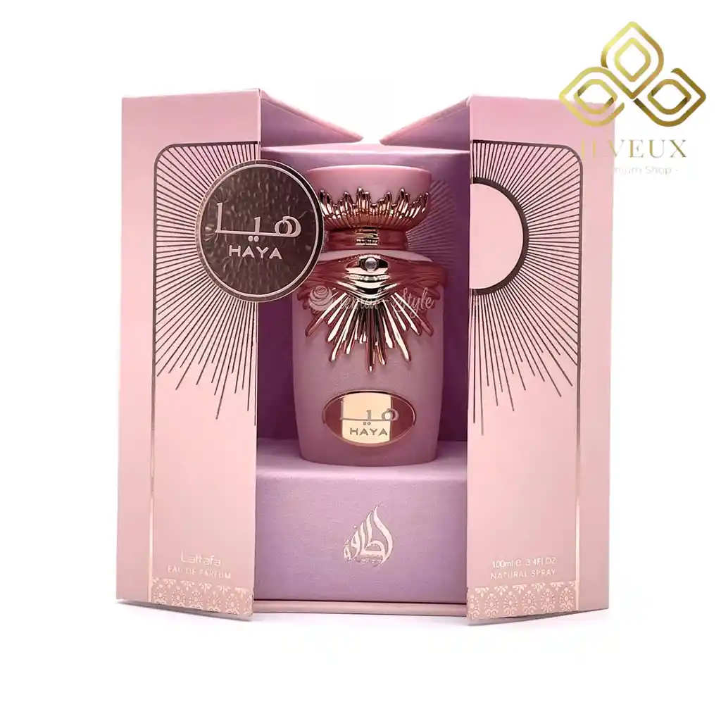 Haya de Lattafa Perfumes es una fragancia que evoca la elegancia y la sofisticación. Este perfume se caracteriza por su mezcla única de notas que crean una experiencia olfativa cautivadora. **Notas de Salida:** Al inicio, Haya presenta una explosión fresca y vibrante, con notas cítricas que aportan energía y vitalidad. **Notas de Corazón:** A medida que la fragancia se desarrolla, se revelan notas florales y especiadas que añaden profundidad y complejidad, creando un corazón aromático que es tanto seductor como envolvente. **Notas de Fondo:** Finalmente, las notas de fondo son cálidas y amaderadas, con toques de ámbar y almizcle que proporcionan una base duradera y sensual. Haya es ideal para ocasiones especiales o para el uso diario, ya que su aroma es versátil y atractivo. La presentación del perfume también refleja su calidad, con un diseño elegante que complementa la experiencia de la fragancia. En resumen, Haya de Lattafa es una opción perfecta para quienes buscan un perfume que combine frescura, sofisticación y un toque de misterio. Derechos de propiedad intelectual Jlveux Premium Shop:
