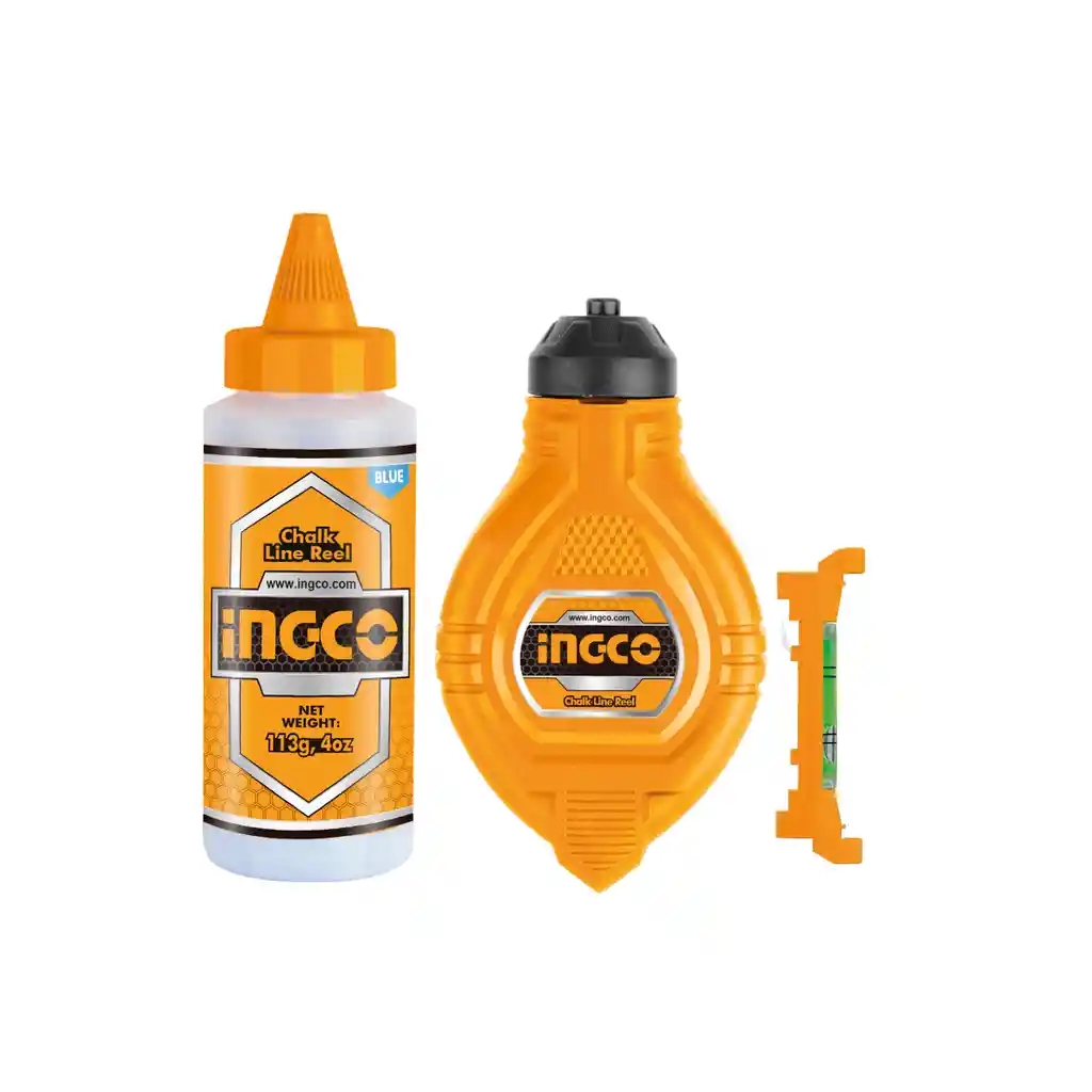 Carrete de línea de tiza Longitud:30m Con 1 botella de tiza Con 1 pieza de burbuja de espíritu Con 1 botella de polvo azul: 4 oz / 113 g Envasado en doble blíster