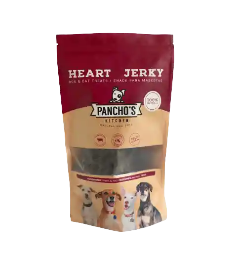 JERKY DE CORAZÓN DE RES Ingredientes: Corazón de res. Nuestros jerkies son tan simples y tan naturales que hasta tu perro podría leer la lista de ingredientes en menos de un minuto. Adelante, cronométralo. 100% proteína, finamente cortada, deshidratada por más de ocho horas, empacada a mano y cerrada al vacío. Sin químicos, sin preservantes.
