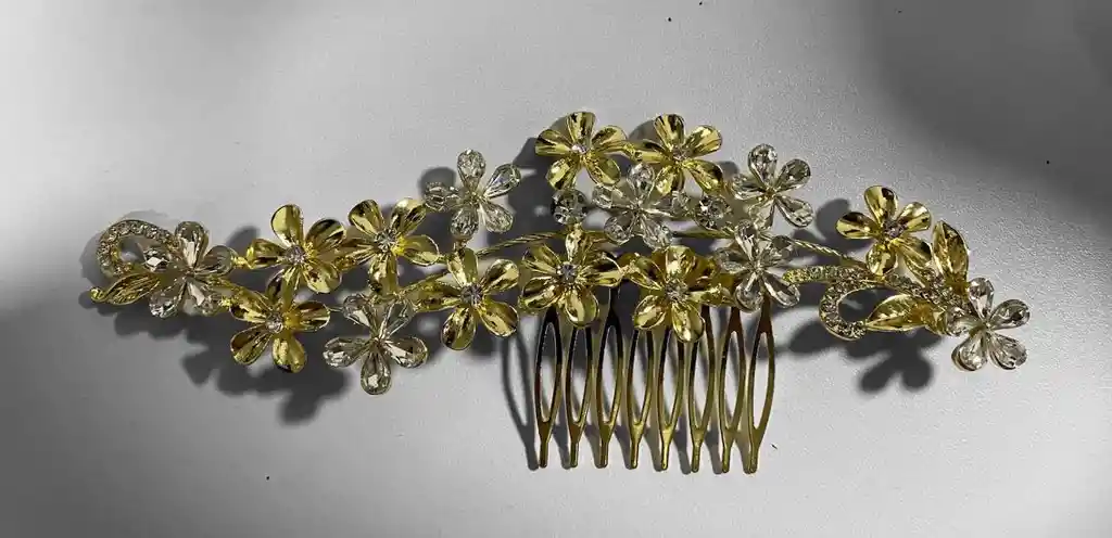 Hebilla Broche Pasador Para El Cabello Flores Pequeñas Doradas Y Plata
