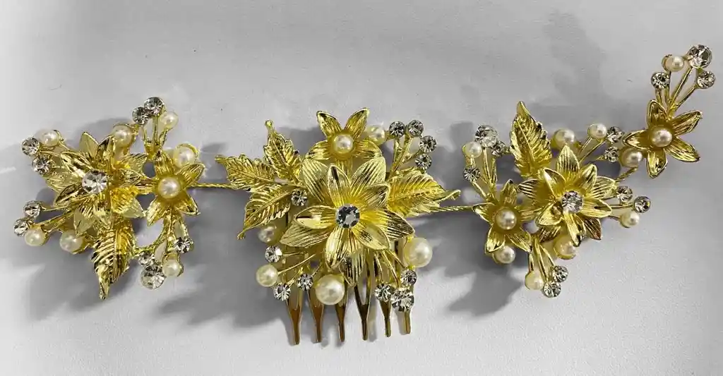 Hebilla Perlas Broche Pasador Para El Cabello Y Flores Doradas
