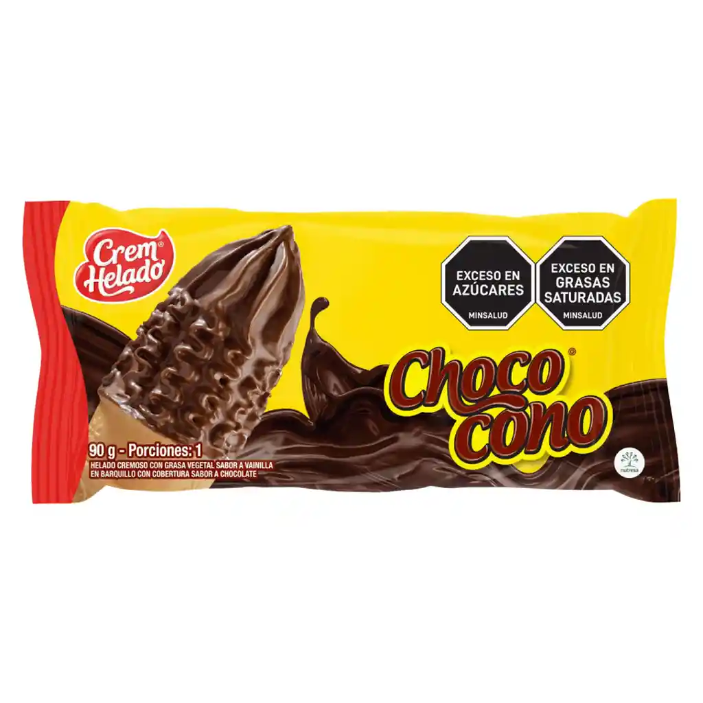 Es un helado de vainilla, cubierto con una capa de chocolate semiamargo, servido en un cono crujiente.