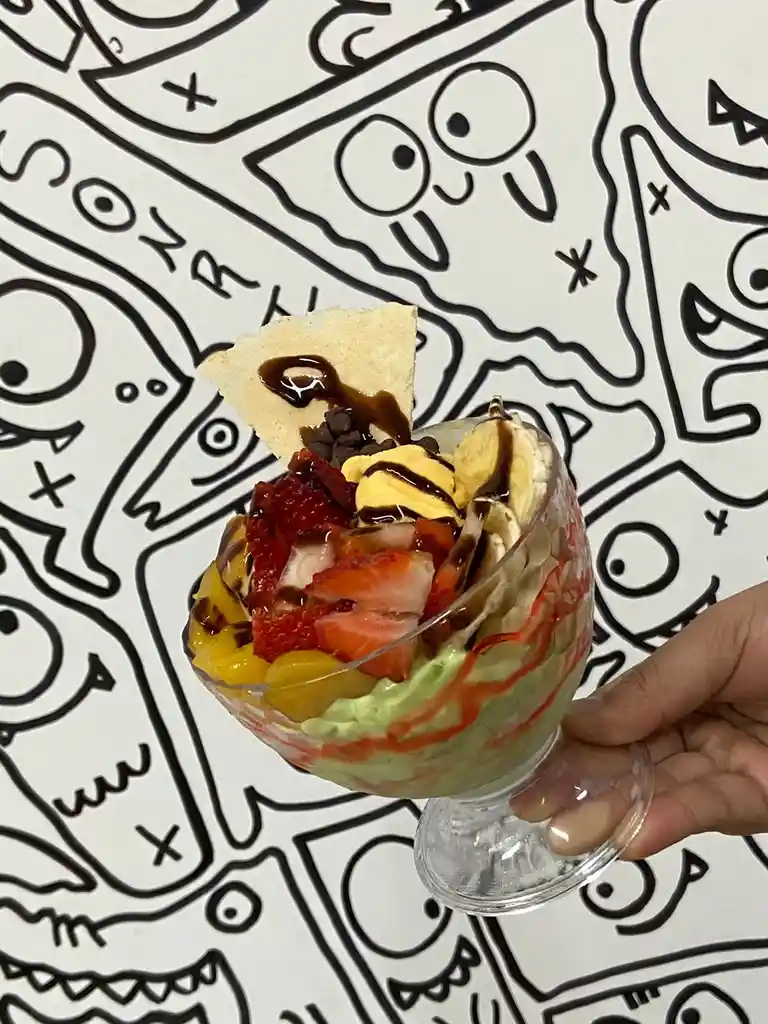 2 SABORESDE HELADO,BANANO, FRESA, MANGO, OBLEA O BARQUILLO, CHISPAS Y SALSAS.