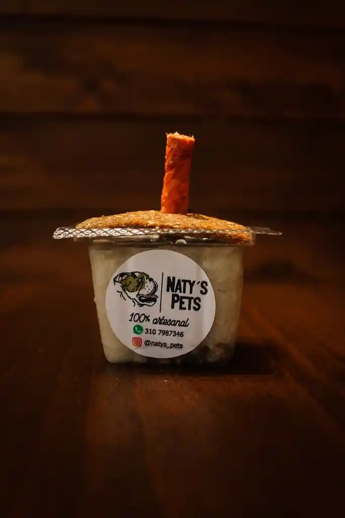 Helado natural de ternera con galleta y palo de carnaza. Producto congelado. Beneficio alimenticio por tener yogurt natural sin sabores artificiales. Snack de recompensa para tu peludito.