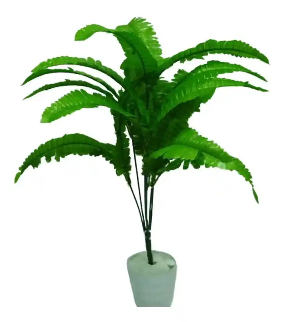 Helecho color verde artificial ideal para todo tipo de decoraciones. Trae 21 hojas. Medidas: 39 X 30 Centímetros.