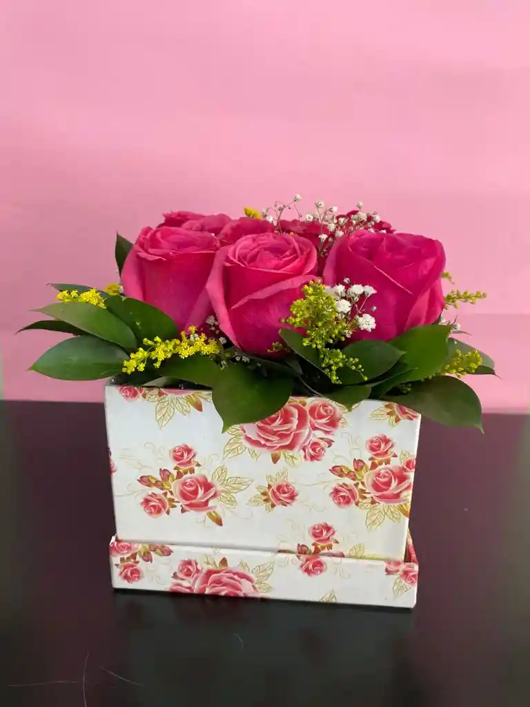 Arreglo de rosas en caja con diseño