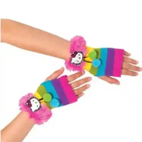 Hello Kitty Guanteletes Fuzzy Niño 1 Par ¡Siempre tendrás un bolsillo lleno de arcoíris cuando uses nuestros guantes sin dedos de Hello Kitty! El ribete de piel sintética de color rosa brillante añade un toque de lujo a estos coloridos guantes sin dedos para preadolescentes, con parches satinados en la cara de Hello Kitty y pompones peludos de colores brillantes para rebotar dondequiera que vayas. Los guantes sin dedos de Hello Kitty miden 5 pulgadas de largo y se adaptan a la mayoría de las niñas preadolescentes hasta la talla 10. Accesorio con licencia oficial de Sanrio Hello Kitty. ADVERTENCIA: PELIGRO DE ASFIXIA - Piezas pequeñas. No apto para niños menores de 3 años.