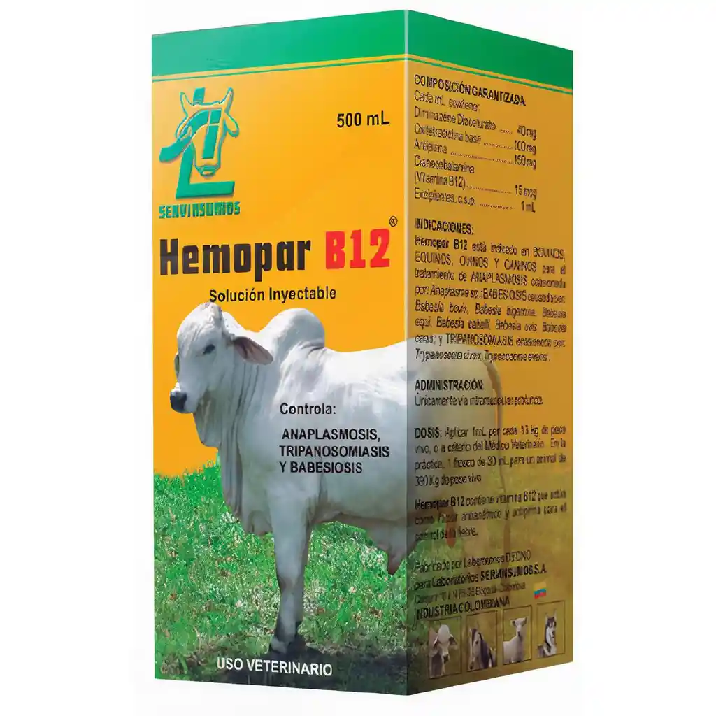 Diminazene Diaceturato (40 mg) / Oxitetraciclina Base (100 mg) / Antipirina (150 mg) / Vitamina B12 (Cianocobalamina) (15 Mcg) / Excipientes Csp (1 mL). Hemopar B12 Inyectable Uso Terapéutico: Hemoparasiticida Principio Activo: Diaceturato de Diminazene, Oxitetraciclina, Antipirina, Vitamina B12 Descripción: Hemopar B12 es un Hemoparasiticida. Acción: Hemoparasiticida Indicaciones: Hemoparasiticida de Amplio Espectro Indicado en Bovinos, Búfalos, Equinos, Ovinos, Caprinos, Camélidos, en el Tratamiento de la Anaplasmosis Producida Por Anaplasma S.P, Babesiosis (Ranilla Roja), Babesia Bovis, Babesia Equi, Babesia Ovis, Babesia Canis, y de la Tripanosomiasis Producida Por Trypanosoma Vivax, Trypanosoma Evansi. Dosis: 1 mL Hemopar B12 Por Cada 13 Kg de Peso Vivo. En Perros Puede Emplearse Hasta 1 mL Por Cada 6 Kg de Peso Según Recomendación. Vía Intramuscular Profunda. Tiempo de Retiro: el Tiempo de Retiro o Espera Para el Consumo Humano es de 21 Días, Para el Consumo de la Leche es de 6 Días Contraindicaciones y Precauciones: Uso Veterinario. Manténgase Fuera Del Alcance de Los Niños. Los Equinos Sudamericanos Pueden Resultar Susceptibles al Producto. Modo de Aplicación: Solución Inyectable Para Conocer Más Sobre Este Producto Ingresa a: Https://Www.Soydelcampo.Com/ También Puede Interesarte: Https://Lares.Com.Co/Producto/Crecedor-Inyectable/ &Nbsp