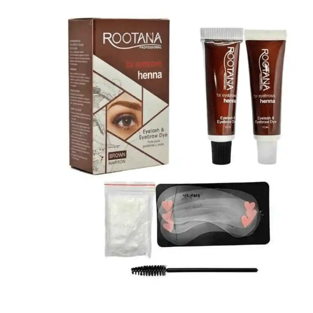 Henna Rootana para Cejas, pestañas y bigote Tinte de Henna Rootana para cejas, pestañas, bigote y barba: Brown Duración aproximada de 1 a 2 semanas, Producto para unas 15 aplicacioneS, Duración de aplicación 15 minutos. Henna Rootana para Cejas, pestañas y bigote Como Utilizar: 1. Aplique una capa delgada de crema para protege tu piel alrededor de las cejas 2.Mezclar una pequeña cantidad de colorante crema(aprox 1 cm) con 10 a 12 gotas de la loción activadora en un pocillo de vidrio(relación mezcla 1:1). 3. Mezcle bien hasta obtener la consistencia homogéneo y liso. 4.Utilizar inmediatamente después de su preparación . No almacenar 5. Aplicar la mezcla en las cejas con la espátula 6.Enjuague con agua después de 10-15 minutos