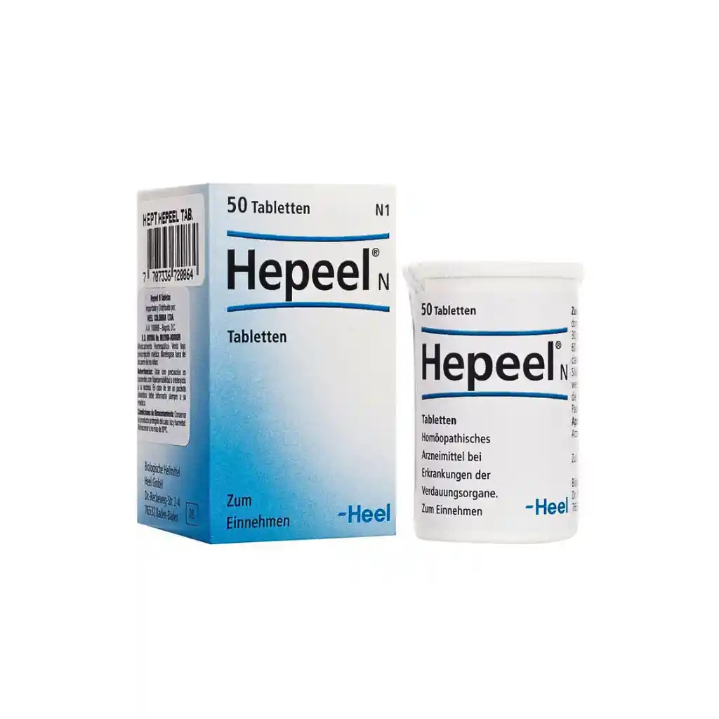Hepeel Tabletas es un medicamento homepático que mejora la función hepática como ocurre en el hígado graso, hepatitis, o cirrosis hepática, refuerza la función hepática mediante la eliminación de toxinas, es antioxidante y hepatoprotector. Presentación: Tarro x 50 comprimidos.