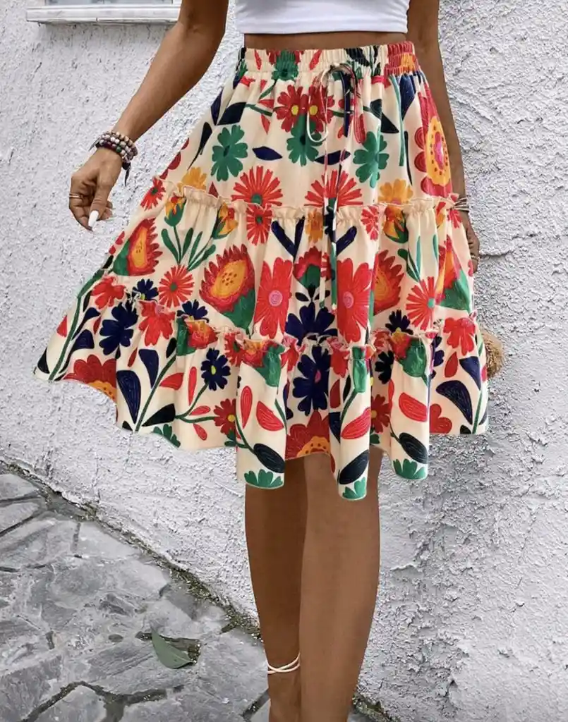 HERMOSA FALDA DE FLORES EN PROMOCION TROPICAL HORMA BELLO TALLA S