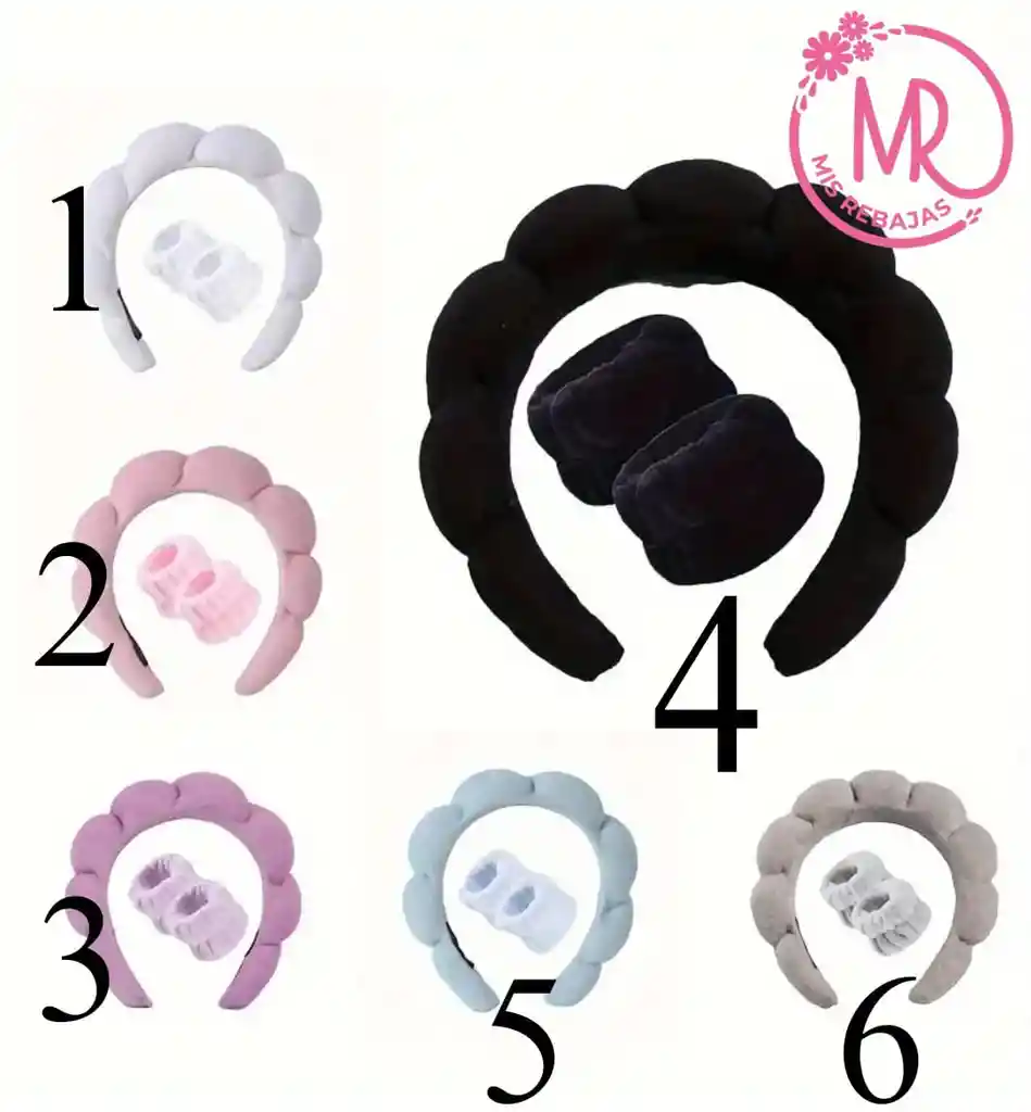 Tono: negro Diadema ideal para rutina de cuidado facial o para maquillajes. 2 muñequeras ideal para rutina de cuidado facial, ya que al lavar tu rostro no permiten que el agua baje a los brazos.