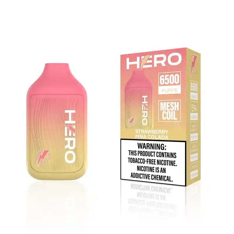 Con más de 6500 caladas por desechable, puede disfrutar de una experiencia de vapeo duradera sin necesidad de recargas constantes. Esta característica garantiza que pueda disfrutar de sus HERO 6500 Puffs durante un período prolongado sin preocuparse por quedarse sin vapeo. ¿Y lo mejor de todo? Los HERO 6500 Puffs son recargables, lo que los convierte en una opción rentable y respetuosa con el medio ambiente. Puede recargar sus desechables HERO varias veces, lo que los convierte en una opción asequible y sostenible para cualquier aficionado al vapeo. Características: Aprox. 6500 caladas 5% (50mg) Nicotina Salada Nicotina sin tabaco / TF Capacidad de 9ml de zumo Batería interna de 650mAh Bobina iMesh Cordón incluido Protección contra sobrecarga y cortocircuito Prohibida la venta a menores de edad. Producto nocivo para la salud que contiene nicotina, sustancia altamente adictiva. Antes de consumir consulte las indicaciones y contraindicaciones de uso