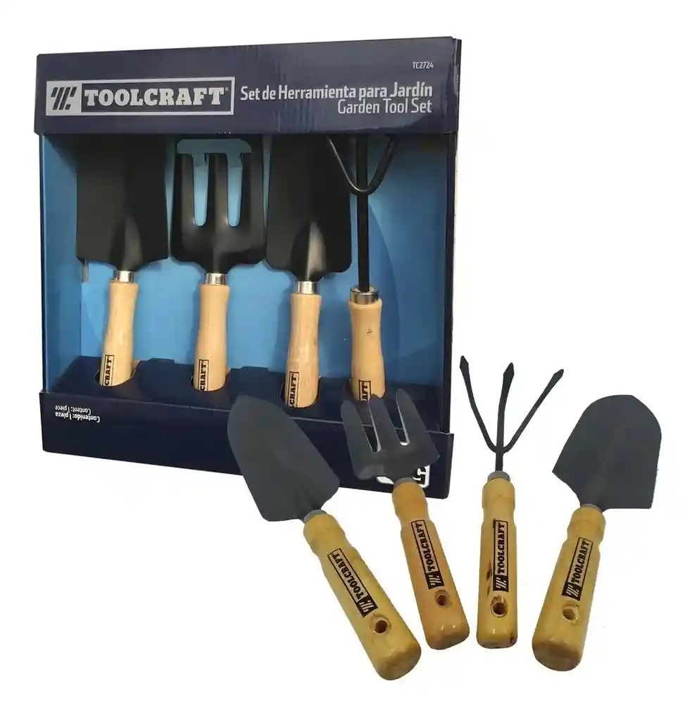 Juego De Herramienta Para Jardín. Mango De Madera De 6 pulgadas. Cabezas Fabricadas En Acero Templado, Contiene Un Bieldo. Un Cultivador, Un Trasplantador Y Una Cuchara, De Alta Resistencia a Un bajo costo.