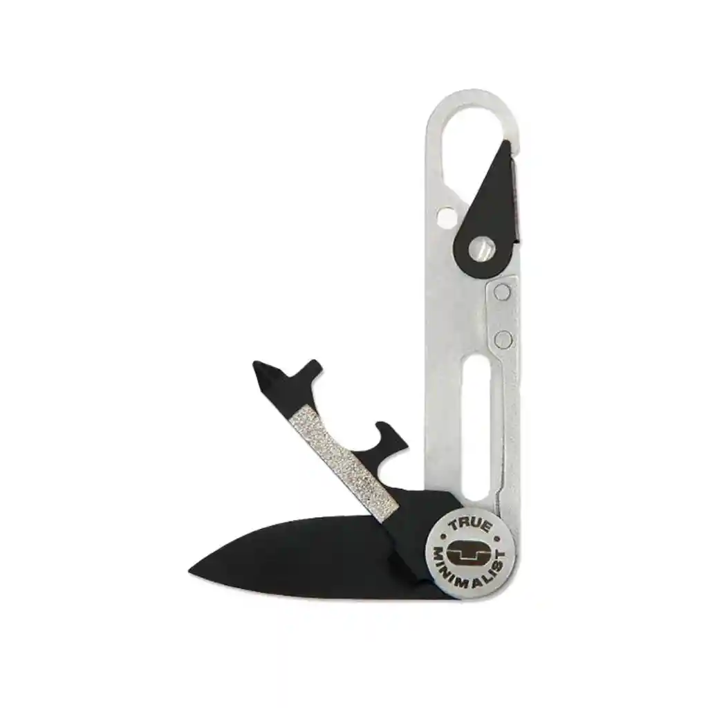 True Utility-Minimalist The Minimalist es una multiherramienta de bolsillo diseñada eficientemente con 7 funciones masivas. Diseñado para ser minimalista junto con tu llavero. La pista está en el nombre. Fabricado con un marco de acero inoxidable de alta calidad 420 con una hoja y una herramienta recubiertas de titanio negro, puede confiar en que el Minimalist es elegante, pero extremadamente resistente y duradero. Sujete a su persona, bolso o llavero para un fácil acceso usando el clip de mosquetón incorporado. Las herramientas de Minimalist incluyen: •Abrebotellas •Lima •Phillips •Cortador de alambre •Destornilladores planos grandes y pequeños Cuchilla sin bloqueo (legal en el Reino Unido) Compacta y liviana, esta herramienta es un complemento perfecto para su llavero, mezclándose con sus llaves y otros accesorios. ¡True Utility, in your pocket!