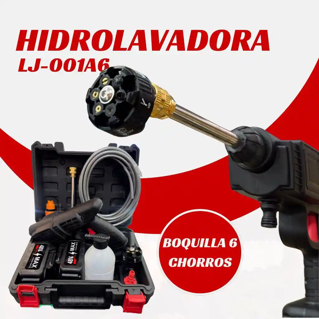 🔥 *HIDROLAVADORA 6 CHORROS* 🔥 Características • nuevo modelo, boquilla 6 en 1, incluye 2 baterías de 48v