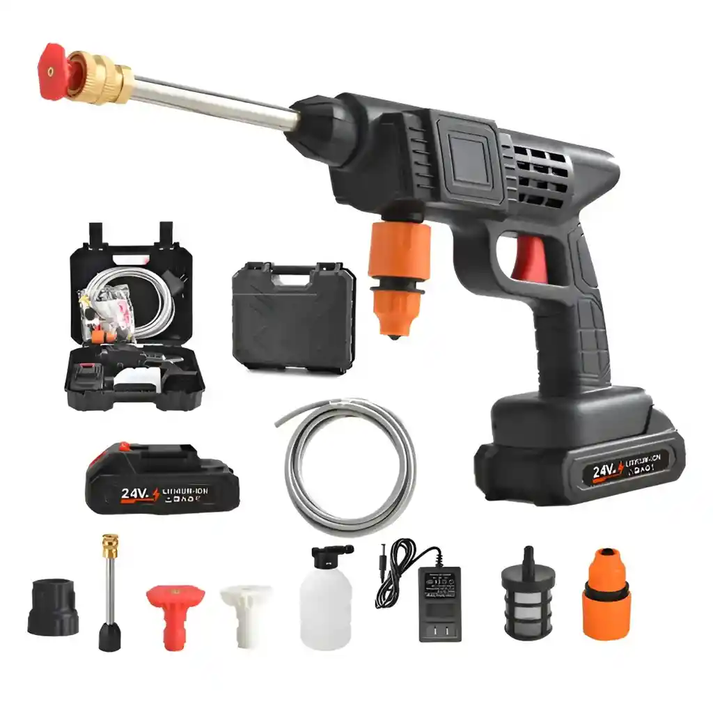 Con tu hidrolavadora puedes dejar reluciente cualquier material o superficie. Su rocío de agua de alta presión es entre diez y cincuenta veces más potente que las mangueras de jardín, lo que hace más eficaz y fácil el proceso de limpieza. Regula la forma de riego según tu necesidad. Para lograr un mayor impacto sobre la superficie, puedes usar la función en línea recta. Si buscas lograr una mayor cobertura, es ideal utilizar el chorro en abanico. Caracteristicas: - Voltaje: 110V. - Potencia de 48 W para un rendimiento óptimo en limpieza. - Presión máxima de 6.895 bar para eliminar suciedad resistente. - Caudal de agua de 32 l/h para eficiencia en el lavado. - Múltiples tipos de chorros para adaptarse a diversas superficies. - Incluye dosificador de detergente para una limpieza más efectiva. - Mango para transportar que facilita su uso en cualquier lugar.
