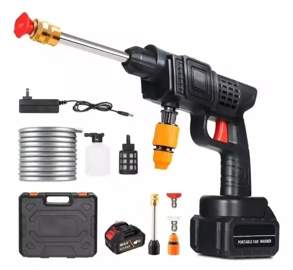 Hidrolavadora Portátil Inalámbrica Recargable Batería 48V COP 79,900.00 COP 120,000.00 RECOMENDACIONES PARA APROVECHAR EL POTENCIAL DE SU HIDROLAVADORA: 1. Sumerja la manguera totalmente en el balde para que se llene de agua, paso seguido conectar a la pistola y al filtro. Esto para cada uso. Asegúrese que el filtro quede en el fondo del balde. 2. Mantener el balde mínimo a un metro de altura para que la gravedad le ayude con la potencia del chorro. 3. Úsela en ciclos de 5 minutos para evitar recalentamiento. 4. Cargar la batería hasta que el led del cargador pase a verde. 1 X Pistola Hidrolavadora con 1 Batería. 1 X Maletín 1 X Extensión tubo pistola 1 X Conexión de agua 1 X Manguera de agua 1 X Filtro de agua 1 X Boquilla de 0° 1 X Boquilla de 40° 1 X Recipiente de jabón 1 X Adaptador de carga batería 1 X Manual de instrucciones 1 X Batería 48V