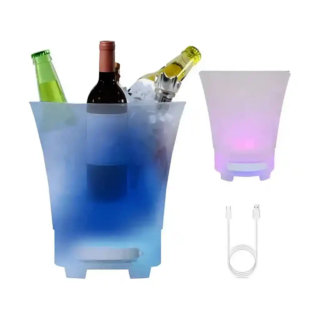 Esta innovadora hielera multifuncional es el accesorio definitivo para transformar cualquier reunión en una experiencia inolvidable, combinando estilo y tecnología en un solo dispositivo. Con una generosa capacidad de 7 litros, permite mantener una gran variedad de botellas y latas perfectamente frías, mientras su sistema de iluminación LED con 7 efectos de color crea el ambiente ideal según el ritmo de la música. Gracias a su altavoz Bluetooth integrado de alta fidelidad, podrás reproducir tus listas favoritas de forma inalámbrica , facilitando además su mantenimiento gracias a que el altavoz es desmontable para una limpieza segura del balde. Es la solución portátil y moderna para quienes buscan practicidad, sonido de calidad y un toque visual impactante en sus fiestas o eventos al aire libre. Ficha Técnica Modelo: Ice Bucket Speaker 7L Capacidad en volumen: 7 Litros Material: Plástico ABS de alta resistencia y acrílico translúcido Dimensiones: 31.7 cm (Ancho) x 27.5 cm (Profundidad) x 26 cm (Altura) Conectividad: Bluetooth Funciones adicionales: Parlante integrado y Luces LED Cantidad de colores de luz: 7 colores con efectos Tipo de alimentación: Batería recargable interna Método de carga: Cable USB (incluido) Tiempo de reproducción de música: Hasta 3 horas Características especiales: Parlante desmontable para fácil limpieza del cubo Términos de garantía:Para defectos de fábrica o retractos: Por favor revise el producto apenas lo reciba y antes de usarlo. No aplican ley de retracto o defectos de fábrica luego de usar el producto. Se manejan máximo 5 días para reportar defectos de fábrica (por ejemplo, producto funciona mal, piezas faltantes, rotas, etc). Para hacer efectiva la devolución el producto debe devolverse con el empaque original, el cual debe estar en buen estado, incluir todos los documentos y las partes completas y sin daños.