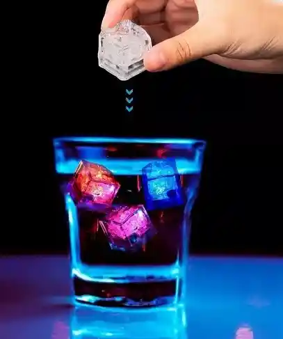 Hielos led para darle onda a cualquier fiesta. Ellos se iluminan cuando lo pones en liquido. Van cambiando de colores. Características Tipo: cubo de hielo. Material de la luz LED: acrílico. Duración: 8-25 horas (aprox.). Funciona con 3 pilas de botón AG3 Medidas: 2,9 cm x 2,9 cm x 2,9 cm (aprox.)