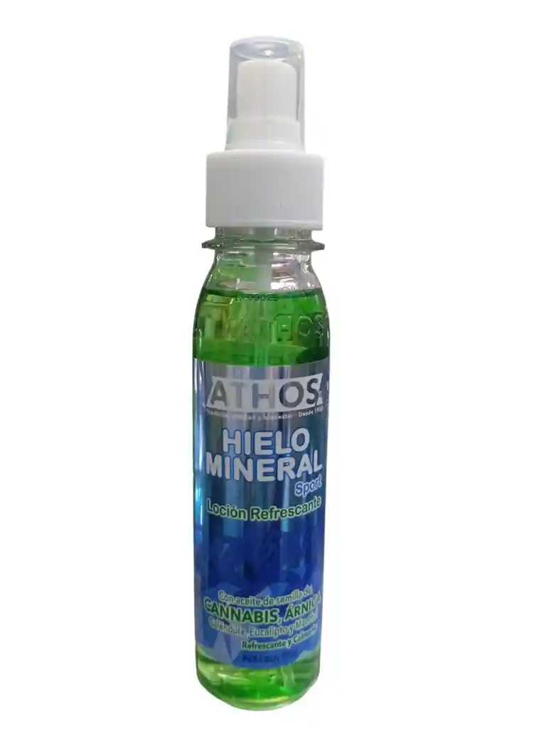 El hielo mineral sport con aceite de semilla de cannabis es una loción Refrescante. Utilízalo antes, durante y después de la actividad física y en tratamientos con fajas y vendas. Presentación LÍQUIDA Contiene: Aceite de Semilla de Cannabis Extracto de Árnica Caléndula Eucalipto Mentol