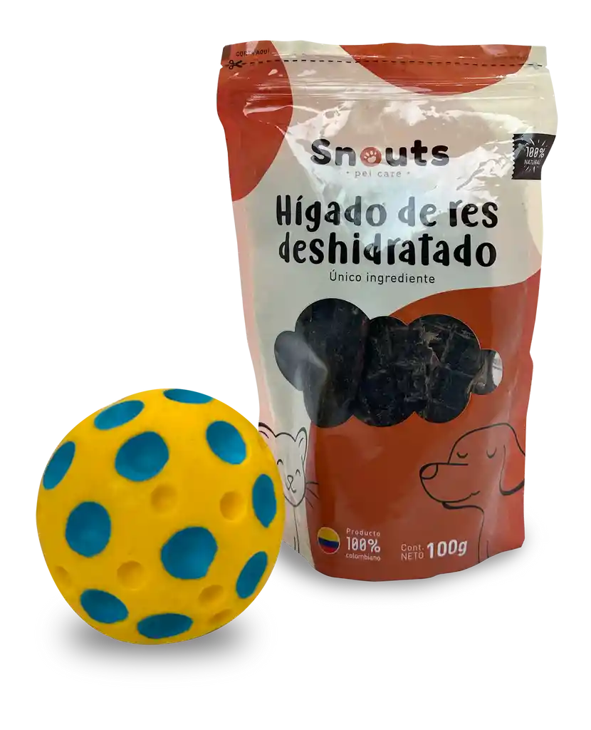 Pelota amarilla blanda con aroma a tocineta, ayuda al estrés y la ansiedad de tu mascota y a fortalacer el vinculo con el + El higado de res deshidratado es un excelente snack para perros y gatos. Hecho 100% con higado de res