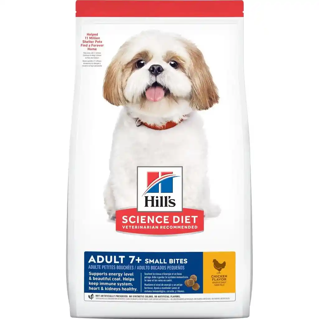 Está formulado para necesidades específicas del envejecimiento. Proporciona nutrición fácil de digerir con una mezcla sinérgica de ingredientes para ayudar a favorecer el nivel de energía y actividad. Delicioso sabor pollo en un bocado de tamaño pequeño para aquellos que prefieren la variedad. Se recomienda para perros adultos de 7+ años de edad. No se recomienda para cachorros, perras gestantes o lactantes.