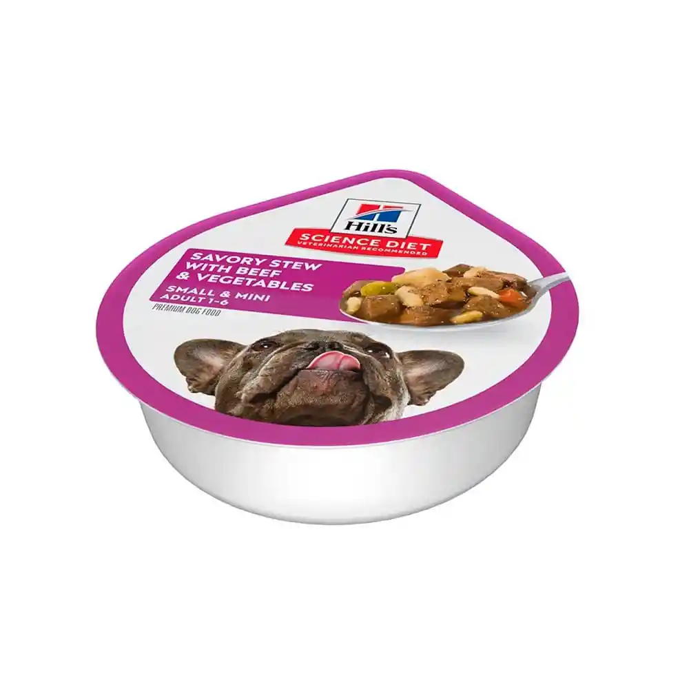 Hill's Science Diet Adult Small & Mini es el alimento húmedo perfecto para cuidar la salud y el bienestar de tu perro de raza pequeña. Con una sabrosa mezcla de carne real, arroz integral y verduras, este estofado ofrece una nutrición equilibrada y deliciosa, todo en un conveniente formato de 99 gramos.