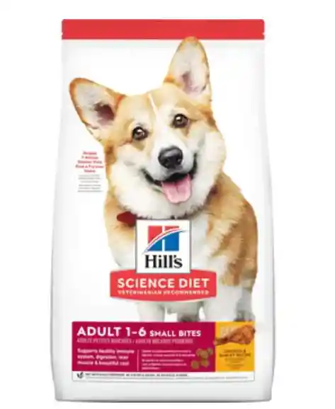 Hills - Science Diet Adult Small Bites 1-6 Chicken & Barley Recipe Dog, tiene ingredientes fáciles de digerir, omega 6s y vitamina E para una pelaje radiante, proteína para construir músculos magros, alimento para los que prefieren croquetas pequeñas