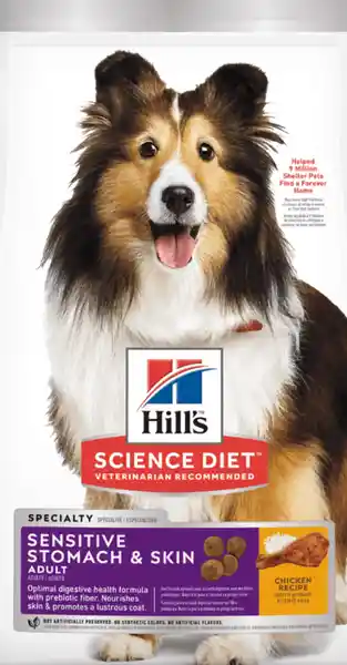 El Alimento Seco Hill's Science Diet Sensitive Skin & Stomach. Alimento Para Perros Adultos Con Piel y Estómago Sensibles (Heces Flojas Ocasionales. Molestias Estomacales o Problemas Para Tolerar el Alimento Actual). Es Una Dieta Especializada Que Proporciona Una Digestión Óptima y Nutre la Piel. Promoviendo un Pelaje Brillante. Este Alimento Está Formulado Con Fibras Prebióticas Que Favorecen Una Alta Digestibilidad. Asegurando Una Absorción Óptima de Nutrientes y Facilitando la Recogida de Las Heces. Este Alimento ha Sido Enriquecido Con Vitaminas y Minerales Esenciales Para Apoyar la Salud General de tu Gato. Con un Enfoque Particular en Aquellos Con Sensibilidades Digestivas y Cutáneas. La Combinación Cuidadosa de Ingredientes de Alta Calidad Ayuda a Fortalecer la Barrera Cutánea y a Mantener el Buen Funcionamiento Del Sistema Digestivo. Hill's Science Diet es la Marca #1 Recomendada Por Veterinarios en EE.UU.