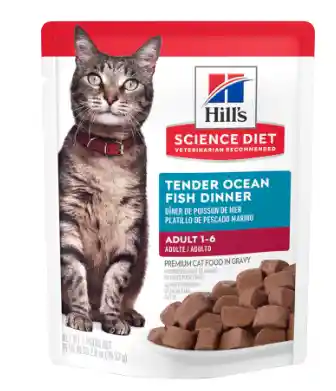 El alimento húmedo en pouch para gatos adultos Hill’s Science Diet Adult ofrece una experiencia culinaria inigualable con trozos deliciosos en una irresistible salsa. Esta suave comida para gatos es fácil de abrir y está cuidadosamente formulada para satisfacer las necesidades nutricionales de los gatos adultos de 1 a 6 años, convirtiéndola en una opción excelente para los paladares más exigentes. Puedes servir esta nutrición premium como una comida independiente o mezclarla con su concentrado para gato seco Science Diet