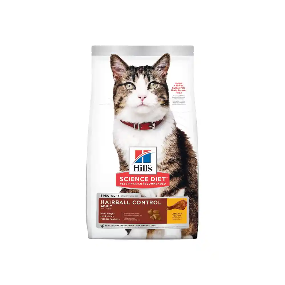 El alimento seco para gatos Hill's Science Diet Hairball Control Adult proporciona nutrición para ayudar a evitar la formación de bolas de pelo en gatos. Se recomienda para: Gatos adultos de 1-6 años de edad propensos a las bolas de pelo.