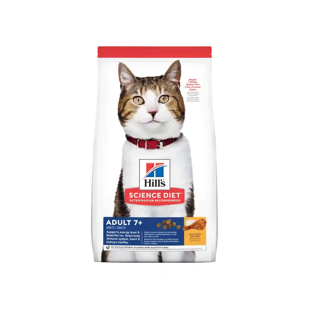 El alimento seco para gatos Hill's Science Diet Adult 7+ favorece el envejecimiento digno en los gatos. Proporciona una mezcla sinérgica de ingredientes para favorecer el nivel de energía y actividad. Se recomienda para: Gatos Adultos de 7+ años