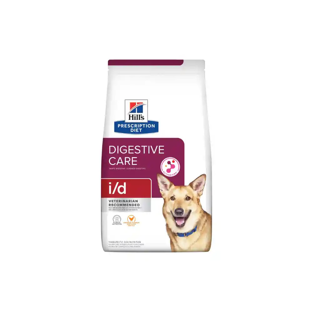 Hill's Prescription Diet i/d es nutrición altamente digerible y de gran sabor para perros pequeños que ha demostrado clínicamente que ayuda a calmar los trastornos digestivos. Fortificado con la tecnología de ingredientes ActivBiome+ patentada de Hill's que ha demostrado clínicamente que activa rápidamente el microbioma intestinal para respaldar la salud y el bienestar digestivos. NECESIDAD / PREFERENCIA Cuidado Digestivo SABOR con Pollo ETAPA DE VIDA Adulto