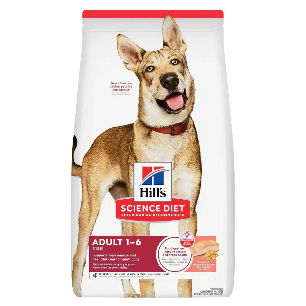El alimento seco para perros Hill’s Science Diet Adult está especialmente formulado para abastecer las necesidades de energía de los perros durante los mejores años de su vida. Con proteína de salmón.