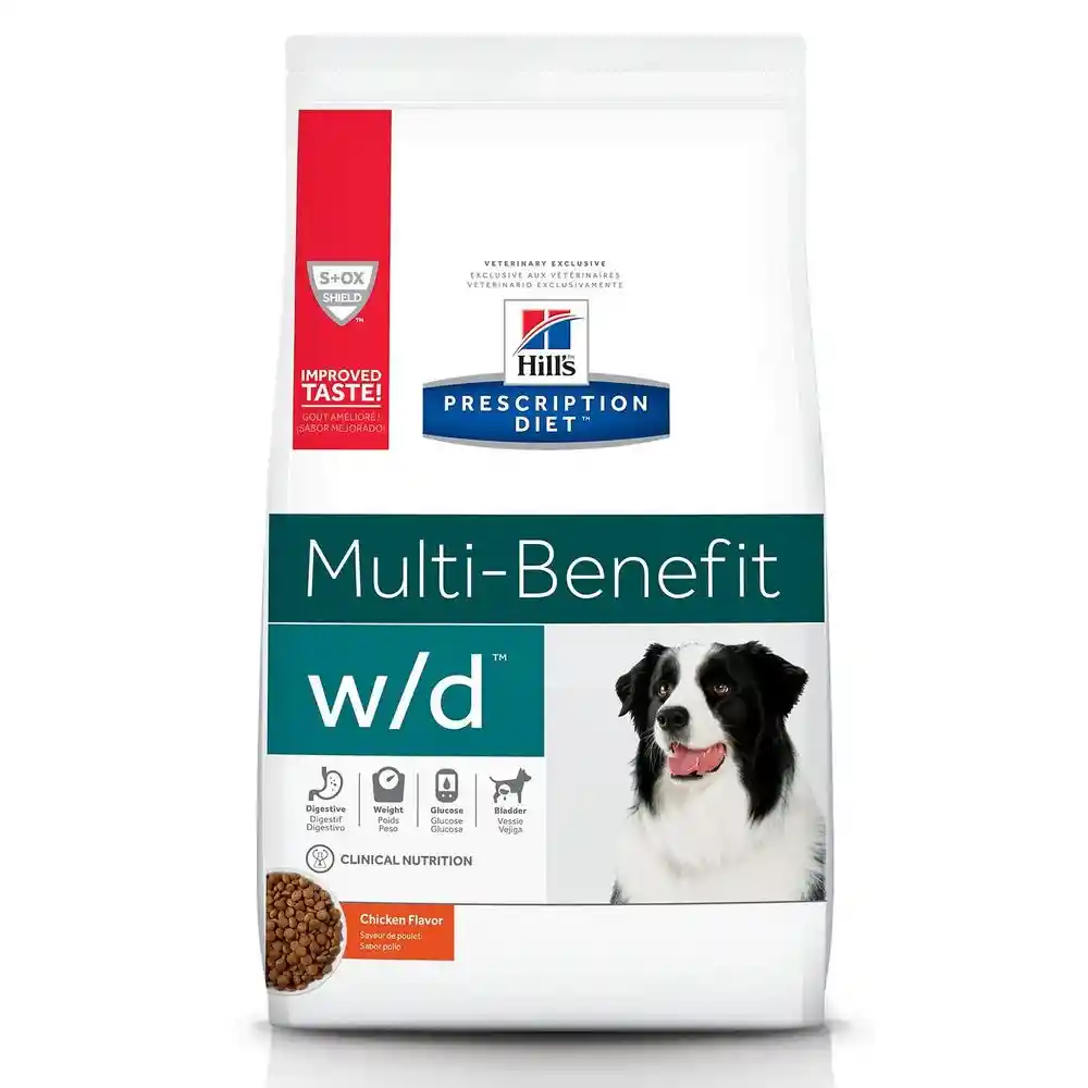 Algunos perros pueden ser más propensos al aumento de peso que otros. Inclusive un poco de peso de más puede impactar en la calidad de vida y relación con la familia ya que el peso adicional puede reducir el tiempo de juego, impactar en la movilidad y afectar la salud general a lo largo de la vida de su perro. Los problemas de peso pueden manejarse exitosamente mediante cambios en el alimento de su perro. Los nutriólogos y veterinarios de Hill’s desarrollaron la nutrición clínica Prescription Diet® w/d® especialmente formulada para apoyar en el manejo del peso de su perro. De hecho, w/d es nutrición clínicamente probada para condiciones que responden a la fibra. Beneficios 1.Ayuda a metabolizar la grasa y conservar la masa muscular 2.Ayuda a mantener un peso sano 3.Promueve la salud del tracto urinario 4.Apoya un sistema inmunológico sano