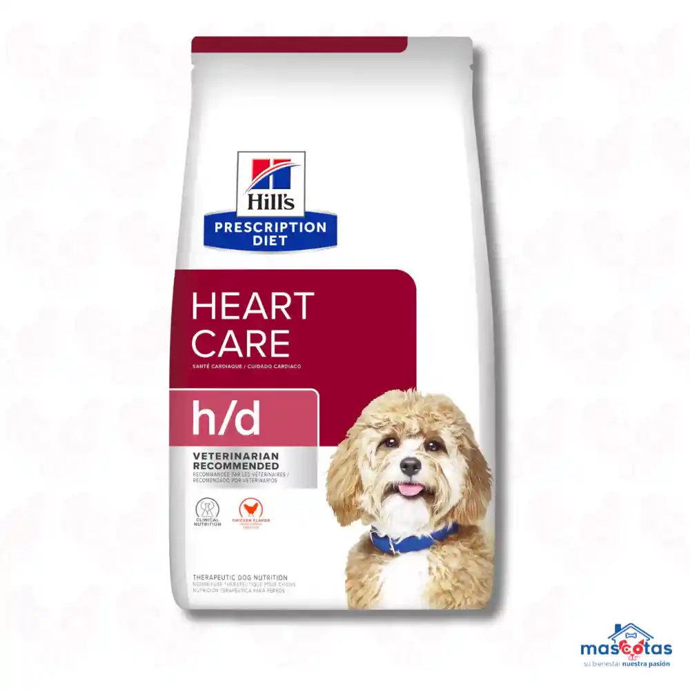 Hills® Prescription Diet™ Perros Cuidado Cardiaco H/D 1.5 Kg El concentrado Heart Care H/D de Hill's es un concentrado para perros especialmente creado para proporcionar una nutrición completa, balanceada y adecuada a los perros que sufren enfermedades cardiacas. Su fórmula innovadora contiene una alta cantidad de antioxidantes que controlará los radicales libres presentes en el organismo del paciente. Además, contiene L-carnitina y taurina que favorecerán las funciones del corazón ayudando a evitar y prevenir cualquier tipo de complicación. Este concentrado para perros pertenece a la línea de concentrados medicados: Prescription Diet de Hills y los resultados de su suministro están clinicamente comprobados. Puedes encontrarlo en 2 diferentes presentaciones: 17.6 Lb y 1.5 Kg. Ayuda a evitar la retención de líquidos gracias a su bajo contenido de sal Contribuirá a una nutrición completa pero adecuada para perros enfermos del corazón Es un concentrado rico en nutrientes de la mejor calidad y muy sanos