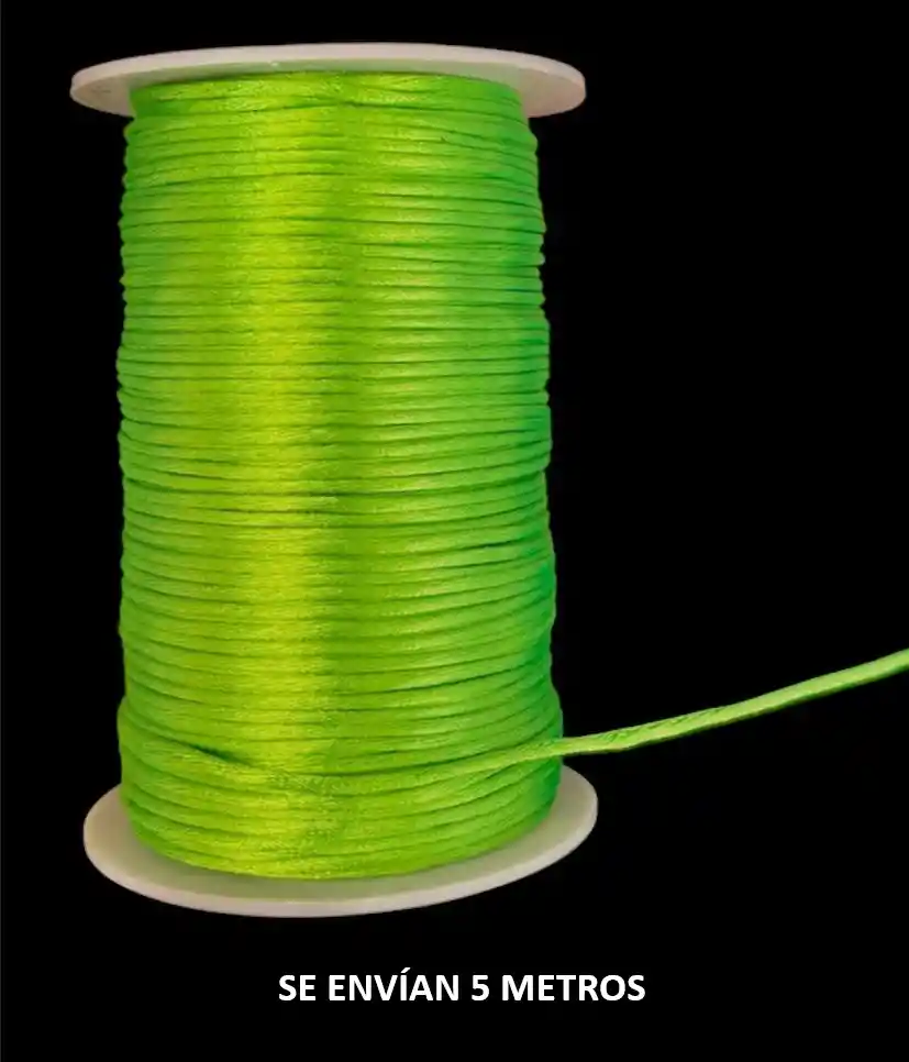 ¡Haz que tus accesorios brillen! Este hilo de 2 mm de grosor cuenta con un acabado satinado suave y resistente, ideal para la técnica de macramé, pulseras de la amistad, collares y manualidades escolares. Su color verde vibrante mantiene su tono con el tiempo y es perfecto para nudos corredizos gracias a su textura deslizante.