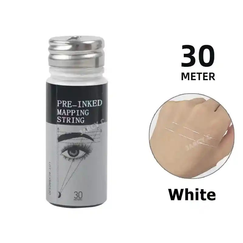 Cuerda de mapeo de Microblading para cejas, hilo preentintado, línea de marcador de cejas, maquillaje permanente blanco, herramienta de teñido de tatuajes, 30M ¡El Mapeo de cejas nunca ha sido tan rápido y fácil! Descripción: 1: SIN Cadena de mapeo de cejas preentintada para aplicaciones de Microblading y PMU, necesita su pretinta usted mismo 2: Esta cuerda es MUY delgada y altamente saturada Cada caja contiene 65 pies de cuerda que debe durar 25-30 clientes 3: ¡Reducirá significativamente el tiempo de mapeo de tus cejas! 4: Hemos creado esta cadena de mapeo ULTRADELGADA para ayudar a reducir el tiempo de mapeo de sus cejas. Esta cuerda le dará las líneas exactas y precisas que necesitará para crear cejas y labios simétricos. 5: Puede obtener las líneas más exactas e impecables con esta cuerda ultrafina y altamente 6: La limpieza simple, fácil y fácil de usar son algunas de las razones por las que los artistas de cejas están usando nuestra cadena. ¡Pruébalo y estarás feliz de haberlo hecho! Paquete: 1 línea de caja (con tinta)