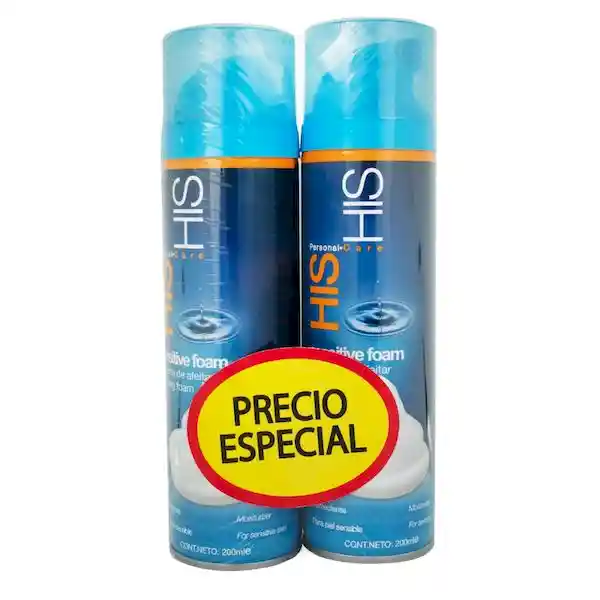His His Espuma Para Afeitar Sensitive 2 Und x 200 mL c/u