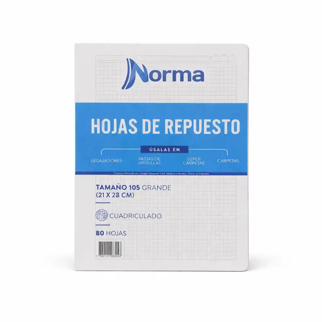 Repuesto hojas cuadriculadas. 80unidades tamaño 105 (21cm x 28cm) 5 perforaciones