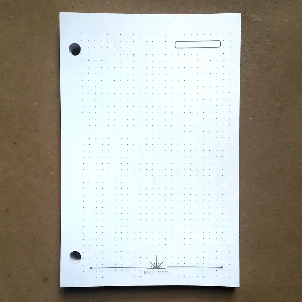 Cambio de hojas para las libretas mini. Papel bond extra blanco 75 gr. Formato puntos.