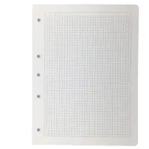 Conjunto de hojas diseñadas específicamente para su uso en organizadores, carpetas o archivadores. Estas hojas están dispuestas en un formato estándar de cuadrícula, lo que facilita la escritura y el dibujo con precisión. Este bloc de hojas de repuesto tiene unas dimensiones de 21.7 x 27.8 centímetros, lo que lo clasifica como tamaño 105 grande. Consta de 70 hojas en total Los huecos para organizar en folder son una característica clave de este bloc de hojas de repuesto.