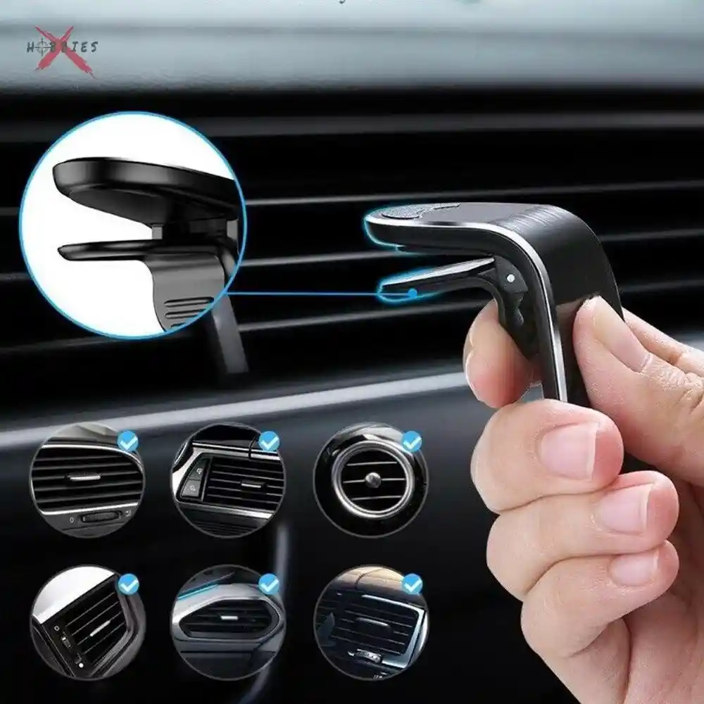 SOPORTE MAGNÉTICO SUPER RESISTENTE Cuenta con 5 imanes que te proporciona una potencia más fuerte para sostener el teléfono firmemente. Te facilita el hacer llamadas, reproducir música o buscar mapas GPS mientras conduces. Montaje en la ventilación: el clip tipo es anti vibración en el soporte del coche, soporta un montaje resistente, no se cae incluso en giros, golpes, frenos o velocidad rápida. Adecuado para las ventilación Horizontales, compatible con diferentes vehículos, como coches, SUV, camiones, y cuenta con almohadilla de silicona suave que protege la salida de ventilación de arañazos. Si tu celular cuenta con funda o estuche de protección la placa de metal se debe colocar en la superficie lisa de la funda, ya que si la colocas entre el celular y la funda puede debilitar la acción magnética. COLOR: Negro