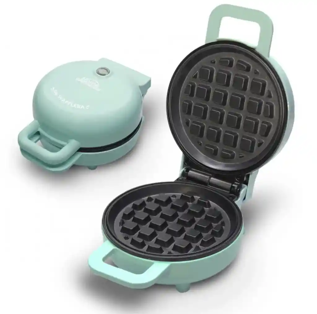 Mini Wafflera Mint Home Elements T Hemw-68m 12Cm Wafflera eléctrica para preparar deliciosos waffles personales en tan solo 5 minutos. Diámetro de 12 cm, con tamaño ideal para guardarla en cualquier espacio de tu cocina. La Wafflera eléctrica cuenta con luz indicadora de estado de preparación. Su interior tiene placas antiadherentes que evitan que se peguen los alimentos. Despreocúpate, no más alimentos quemados, la wafflera eléctrica tiene un sistema regulador de temperatura. Combina los ingredientes a tu manera, para disfrutar un rico waffle en cualquier momento y en cualquier lugar.