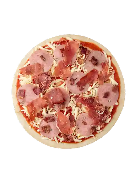 Pizza Personal Para Armar y Hornear en Casa, Masa de la Casa, Salsa Napolitana, Queso Mozzarella, Tocineta, Chorizo Espa�ol y Cebolla Caramelizada. Sin Packaging