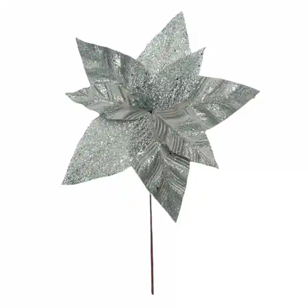 Flor Navideña Decorada Color Plata de 30 x 36 cm.. Sku: 219042.