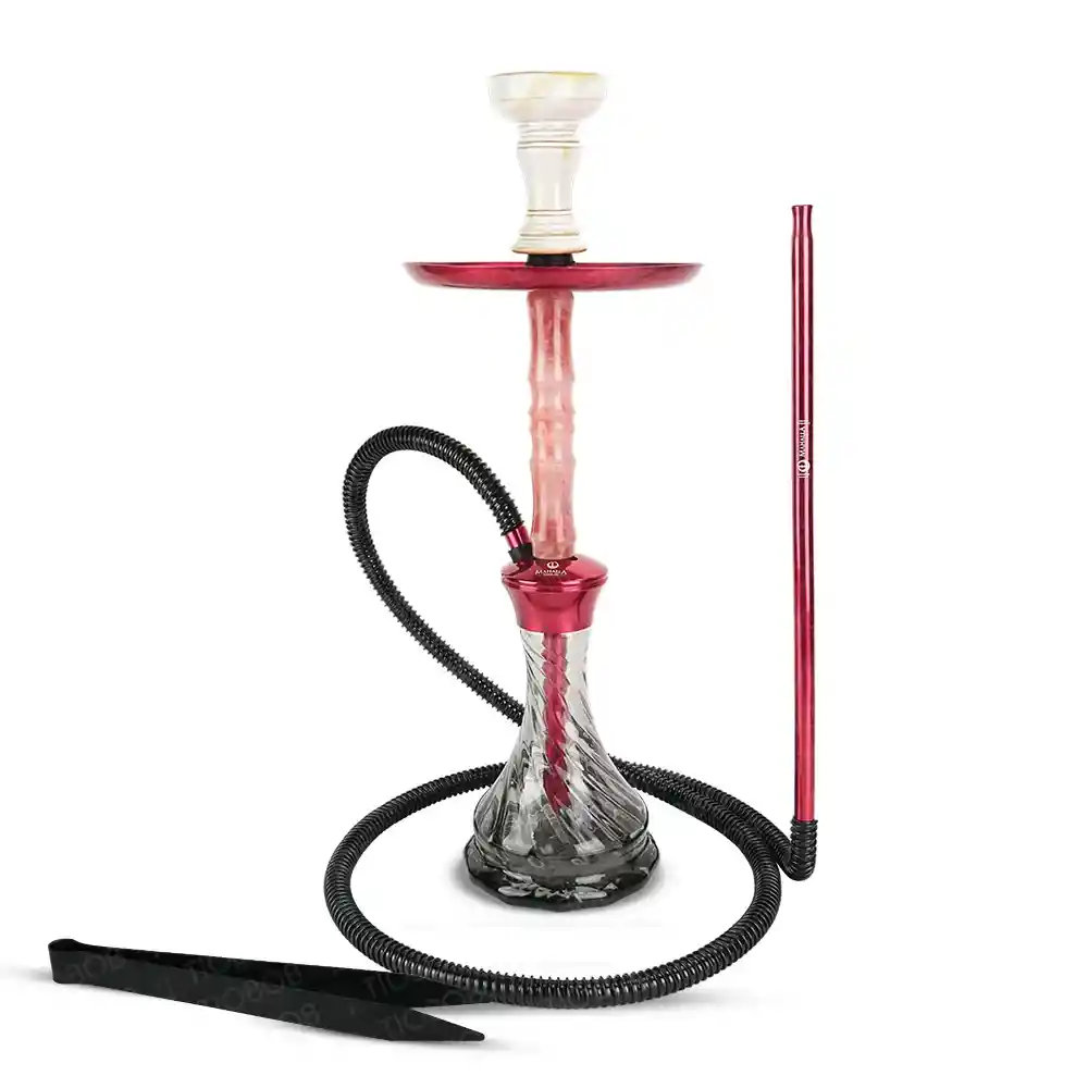 Altura: 51.5 Cm Material: Aluminio, base de vidrio. Incluye: Bandeja, manguera, Bowl, Base, Cuerpo, pinzas y tubo de aire. Este producto puede ser utilizado para productos que contienen nicotina o tabaco. Su uso está destinado exclusivamente a mayores de edad. La comercialización de este tipo de productos está regulada por la Ley 2354 de 2024.