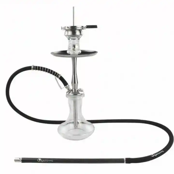 Altura Hookah+Bowl: 45 Cm Materiales: Acero inoxidable y vidrio. Incluye: Cuerpo, tuvo de aire, bandeja, base de vidrio, bowl de vidrio, pinzas, regulador de calor y manguera de silicona de grado quirúrgico con boquilla de carbono. Este producto puede ser utilizado para productos que contienen nicotina o tabaco. Su uso está destinado exclusivamente a mayores de edad. La comercialización de este tipo de productos está regulada por la Ley 2354 de 2024.
